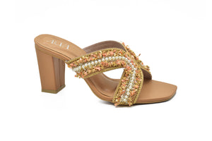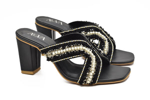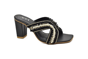 Article 4259– block heel slippers crafted for style and comfort. Featuring delicate detailing and a soft insole, they’re perfect for festive occasions, casual outings, or everyday glam. Add a touch of charm to your step with Article 4259.